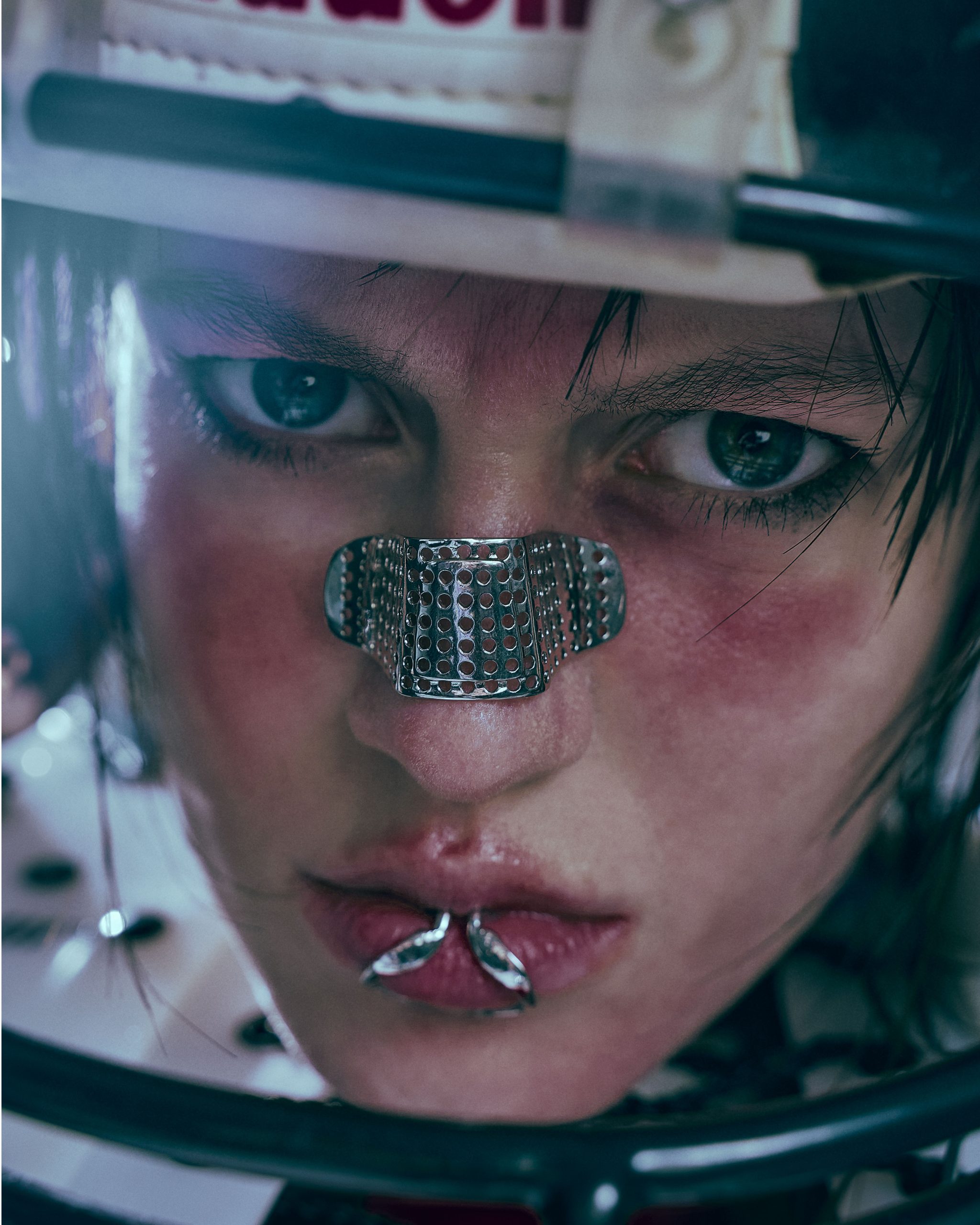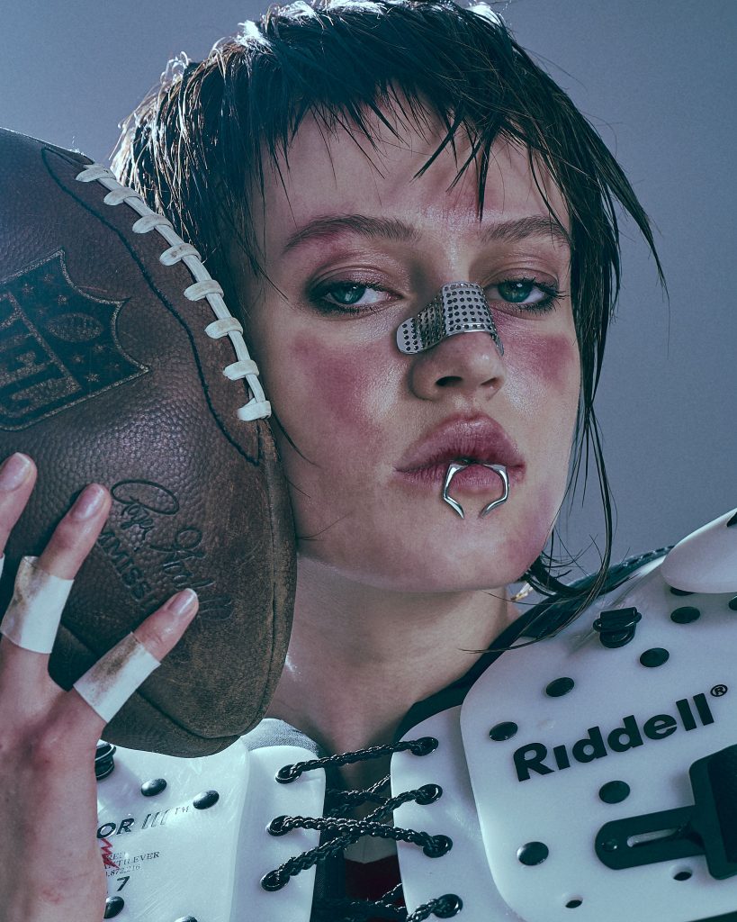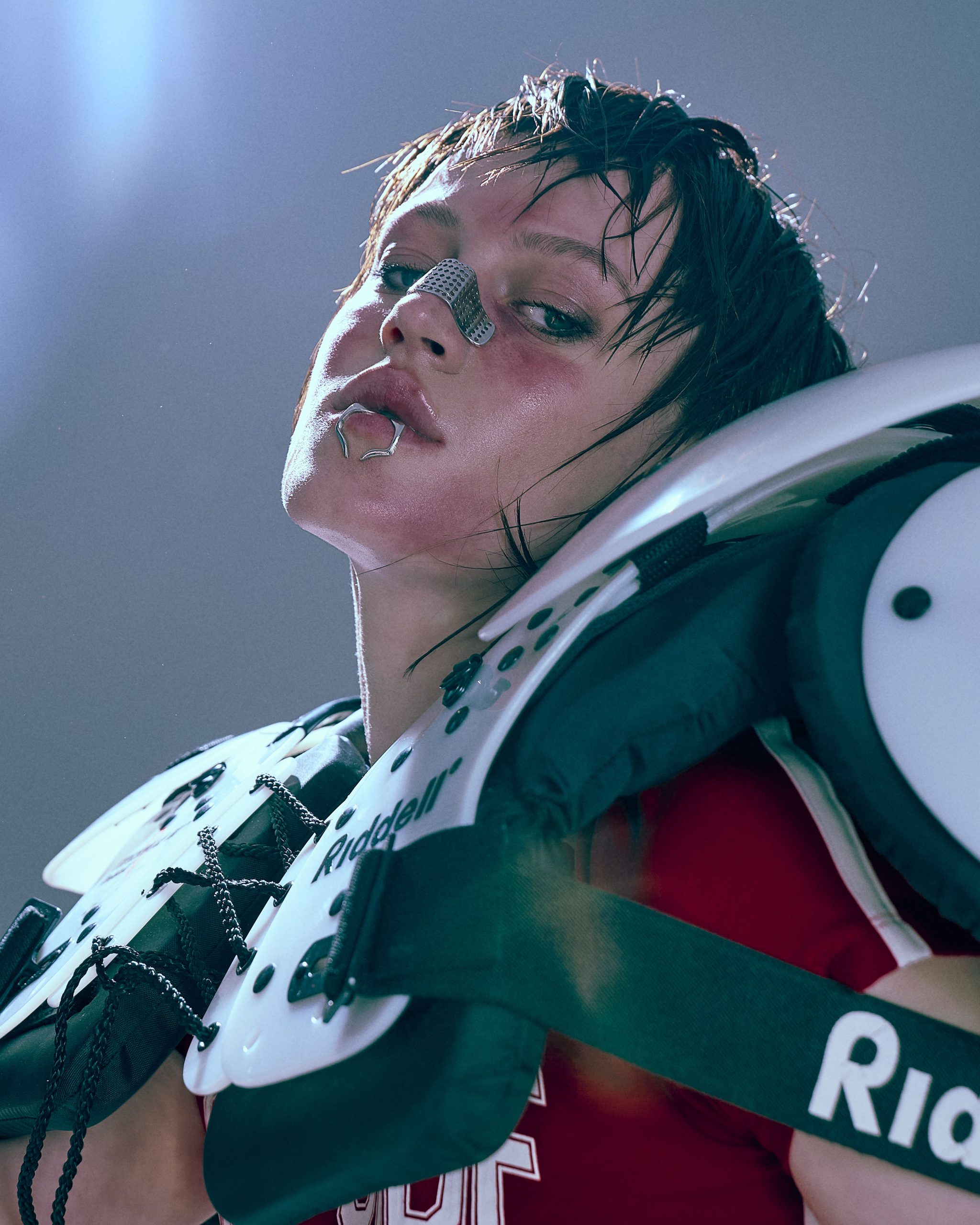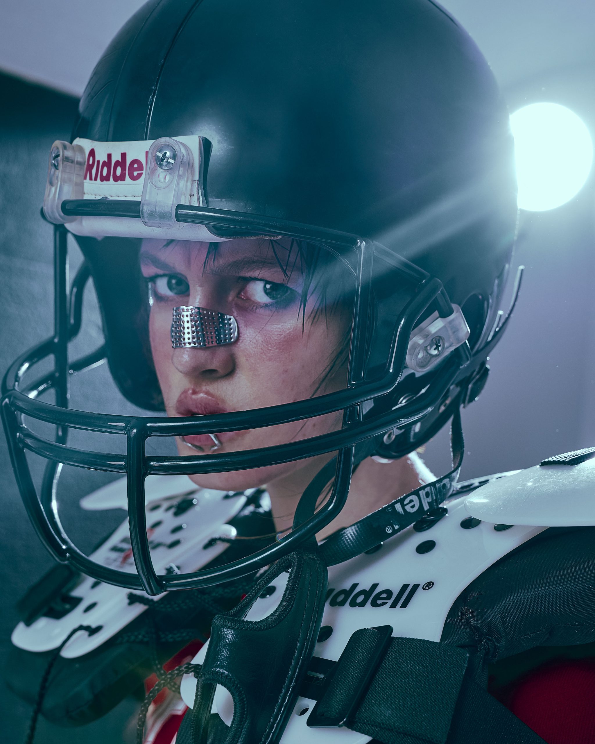The gear used in the shoot is from Riddell, a leader in head protection.