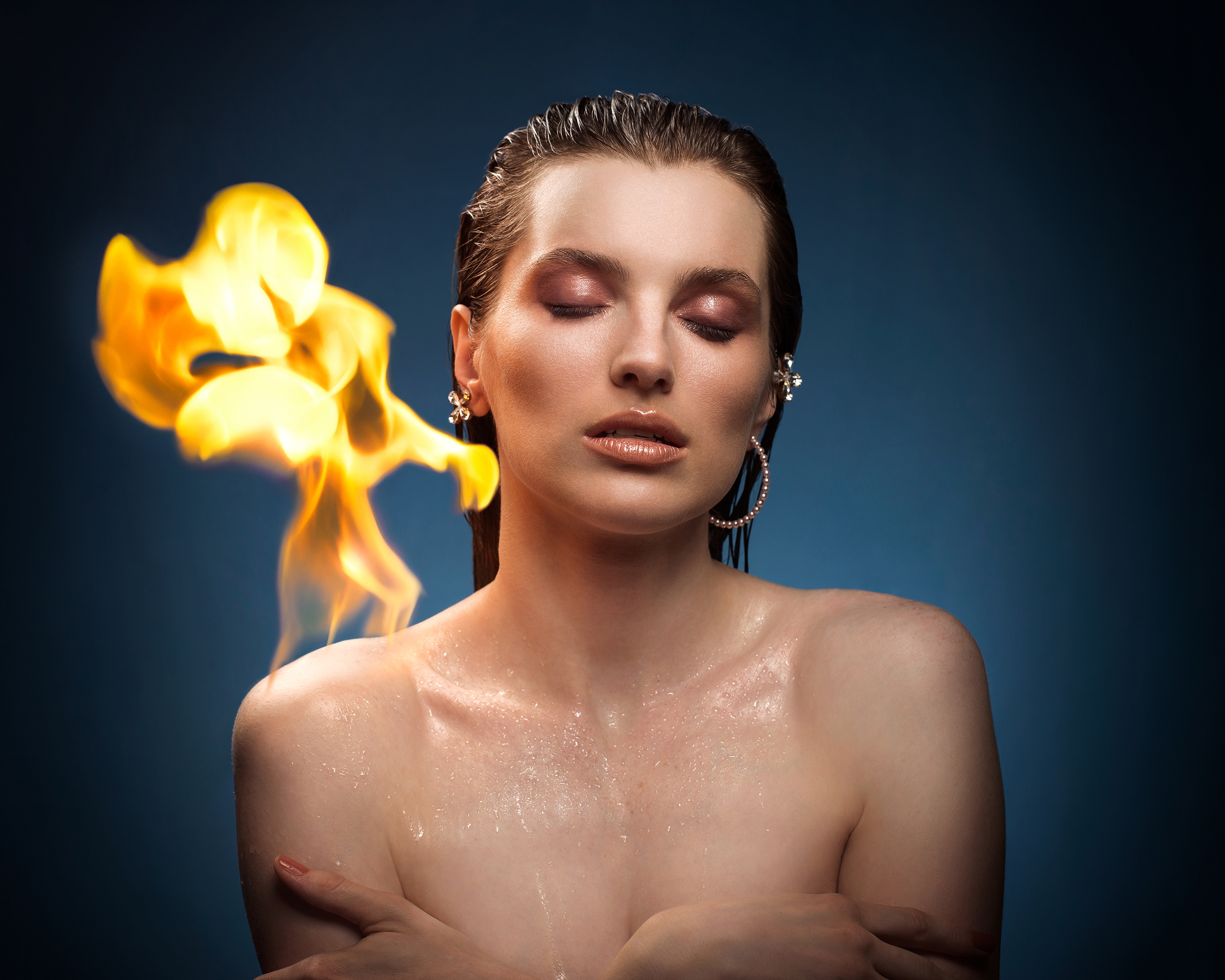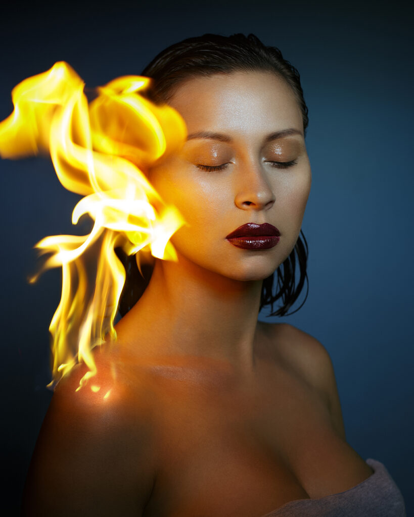 The experience of freezing the movement of living fire in a single frame was both thrilling and unforgettable. While the fire added intensity and authenticity, the highest safety standards were rigorously maintained, ensuring a completely safe and painless environment for the model.
